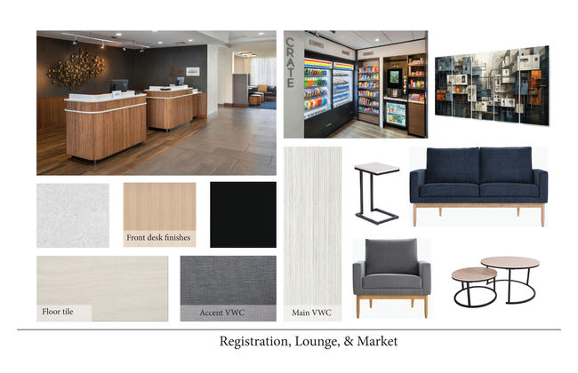 Mood boards for a proposed hotel lobby renovation in Chicago, IL created with Adobe InDesign and Photoshop.